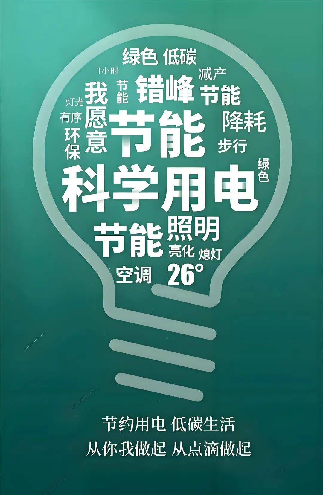 古语有云:“取之有度,用之有节,则常足。”节约用电不仅是应对当前电力紧张的关键举措,更是我们践行社会责任、守护绿色家园的实际行动。让我们从自身做起,从细节入手,争当科学用电的倡导者、节能降耗的践行者、安全用电的守护者,携手共建绿色低碳、安全和谐的美好校园!