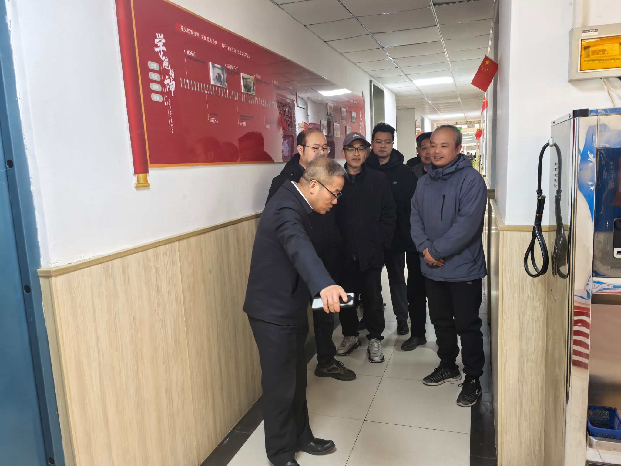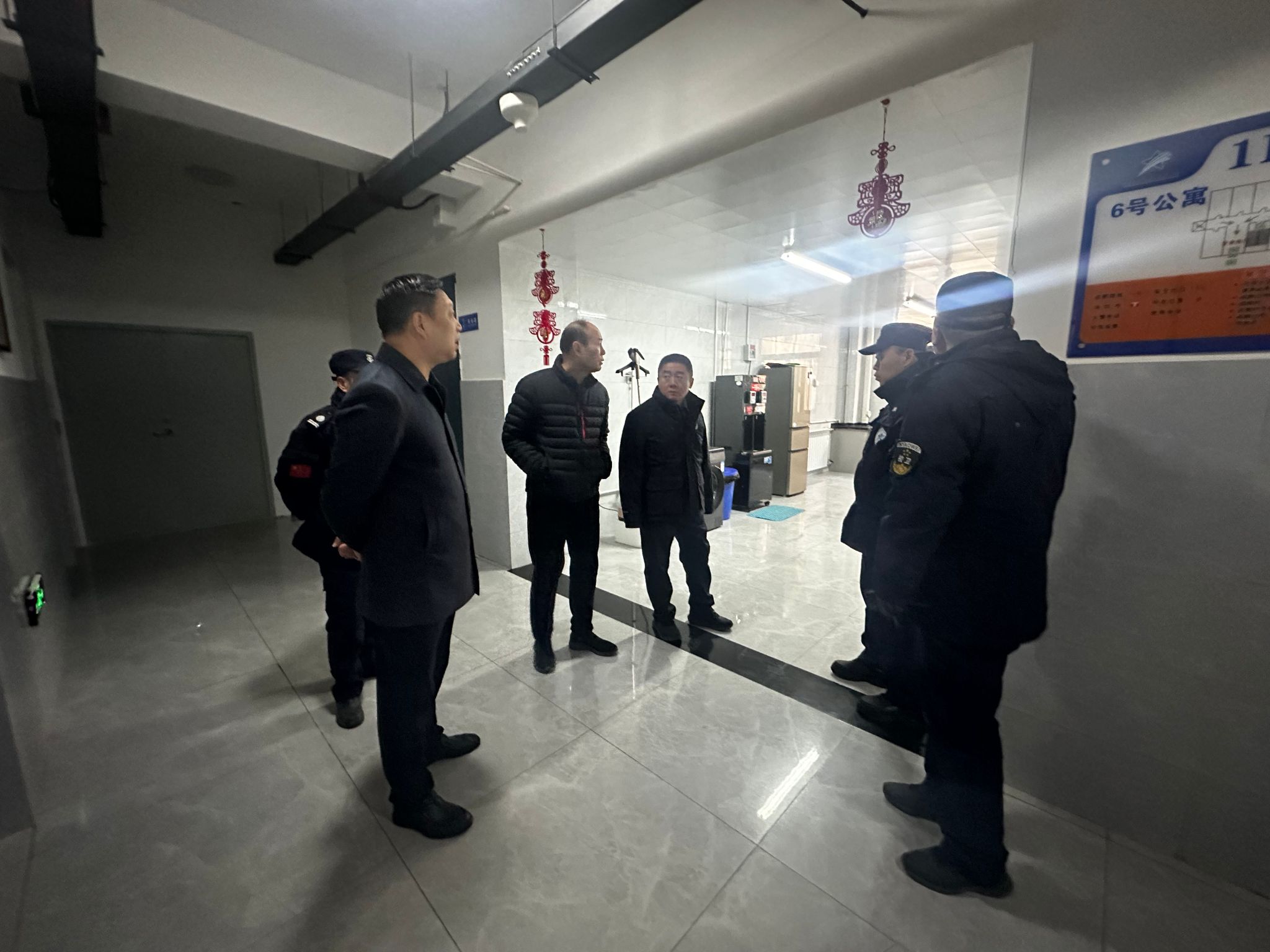 29日上午,自强校区管委会成员部门负责人深入学生公寓重点排查违规使用大功率电器、私拉乱接电线等隐患现象。在食堂实地检查燃气设备运行、油烟管道清洗记录、电气线路安全及特种设备日常维护情况。同时,检查单身宿舍安全管理,压实各环节安全责任。